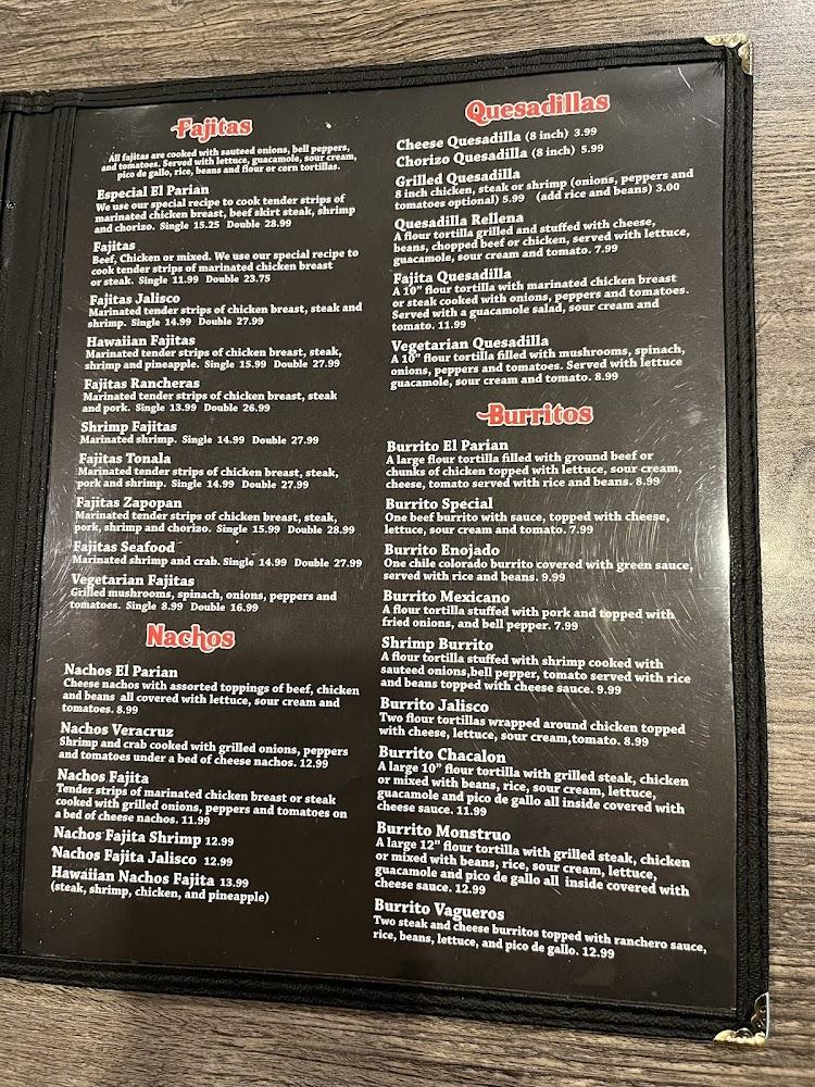 El Parian offers a diverse menu that caters to different tastes and dietary needs. The stars of the show are the classic Mexican dishes including tacos, enchiladas, and burritos. Vegetarian options are thoughtfully included, making it accessible for all. Appetizers like cheese dip and guacamole set the stage for a wonderful meal. The seafood section features flavorful shrimp dishes and fish tacos. Desserts like flan and fried ice cream provide sweet endings to meals. The average price per dish hovers around $10, making this spot both delicious and affordable. Diners will enjoy a mix of traditional flavors and creative twists.